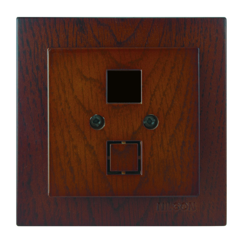 Розетка одинарная компьютерная без модуля RJ-45 NILSON Touran орех предназначена для подключения ПК, модемов, роутеров и другой техники к сети Интернет или при создании локальной сети из нескольких компьютеров. Это надежное решение для обеспечения качественного соединения и создания эстетичного вида ваших стен.