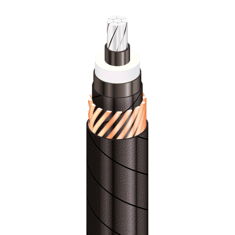 - Внутренний полупроводящий слой: изоляция и внешний слой наложены одновременно методом тройной экструзии. Полупроводящие слои прочно соединены с изоляцией из сшитого полиэтилена, обеспечивая большую устойчивость кабеля к токам короткого замыкания и воздействиям цикла нагрева и охлаждения.