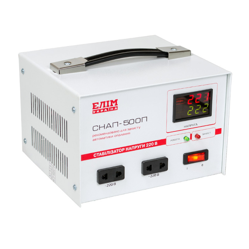 Стабилизатор напряжения СНАН-500П — предназначен для защиты бытовых и промышленных электроприборов от резких и значительных скачков напряжения и перебоев с подачей энергии в питающей сети. Необходим для оборудования, требующего надежного электропитания, сбои в работе которого, могут вывести его из строя, привести к аварийной ситуации, повреждению имущества, остановки технологического процесса.