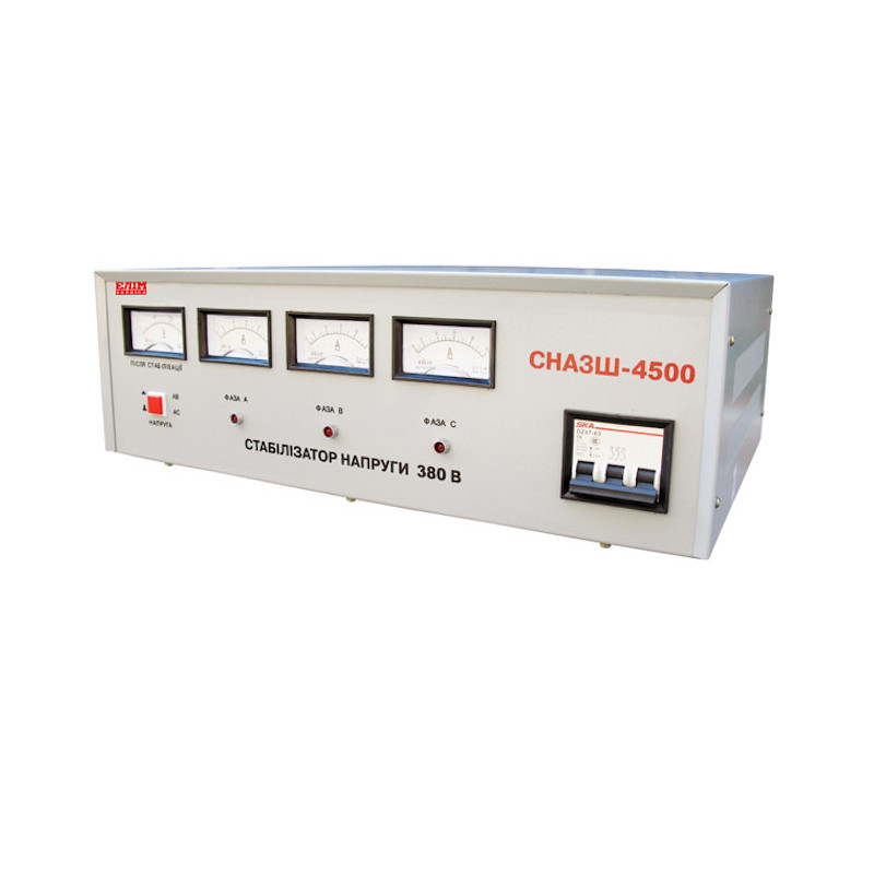 Стабилизатор напряжения СНАЗШ-4500 — предназначен для защиты бытовых и промышленных электроприборов от резких и значительных скачков напряжения и перебоев с подачей энергии в питающей сети. Необходим для оборудования, требующего надежного электропитания, сбои в работе которого, могут вывести его из строя, привести к аварийной ситуации, повреждению имущества, остановки технологического процесса.