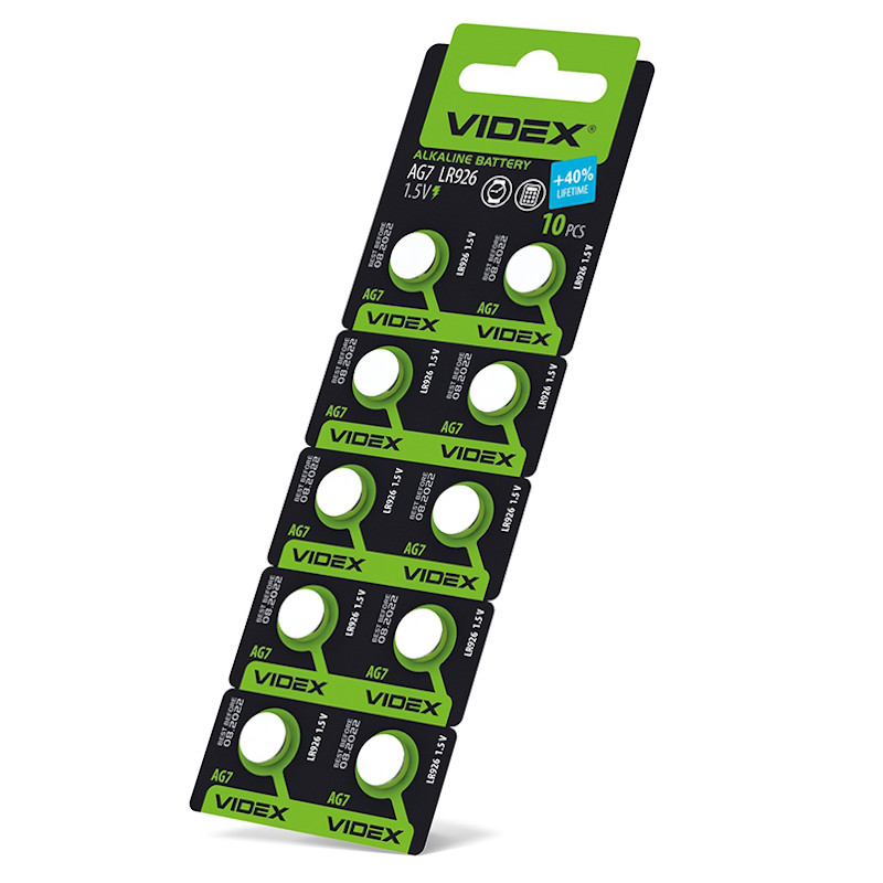 Батарейка VIDEX AG7 LR926 — это миниатюрное одноразовое изделие, обладающее номинальным напряжением 1,5В. Произведена для применения в устройствах разных типов — от сложных цифровых приборов с высоким энергопотреблением, до самых примитивных и потребляющих мало энергии, например, кухонные и напольные весы, игрушки, калькуляторы, медицинские приборы, дистанционные ключи и другое.