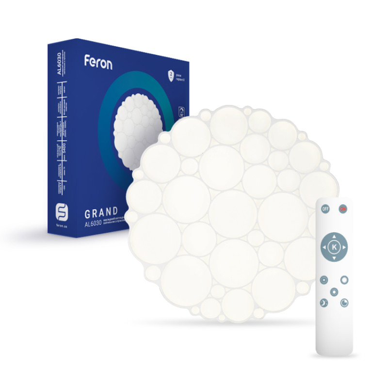 Светодиодный Smart светильник FERON AL6030 GRAND 72W 5400Lm 2700K-6400K - это SMART светильник в новой мощности и с необычным дизайном плафона имитирующего мозаику.