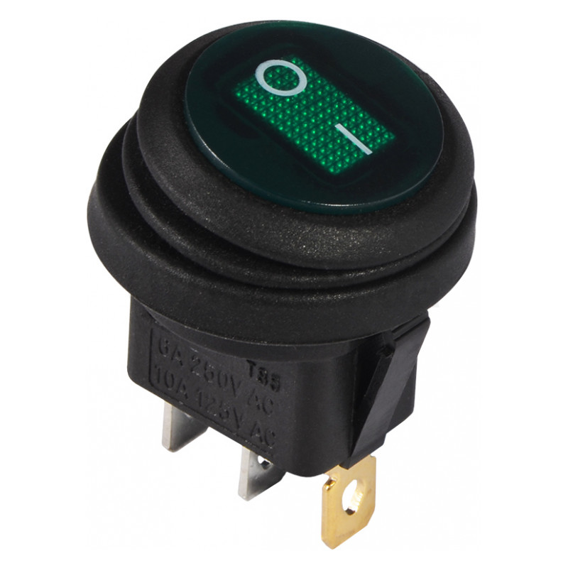 Переключатель АСКО-УКРЕМ KCD1-8-101WN GR/B 1-клавишный круглый с защитой зеленый A0140040078
