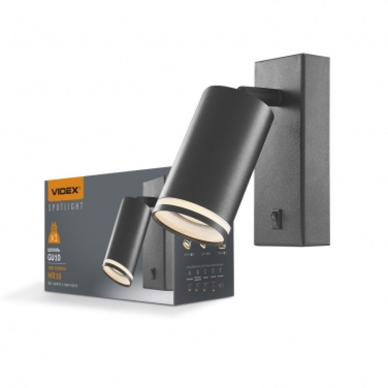 Светильник под лампу SPF05E GU10 настенный с черной кнопкой (VL-SPF05E-B)