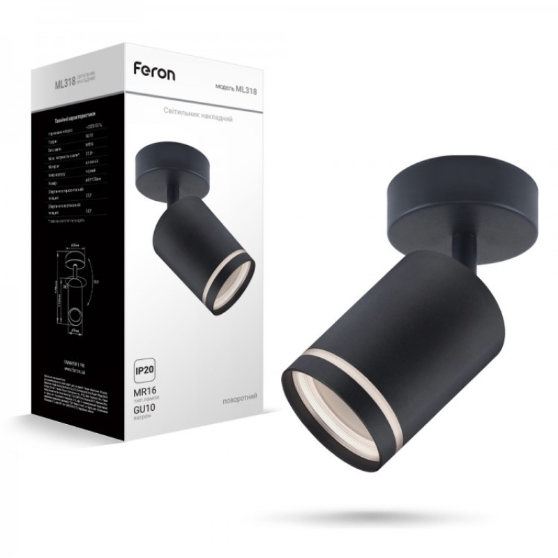 Накладной светильник FERON ML318 MR16/GU10 черный 40151