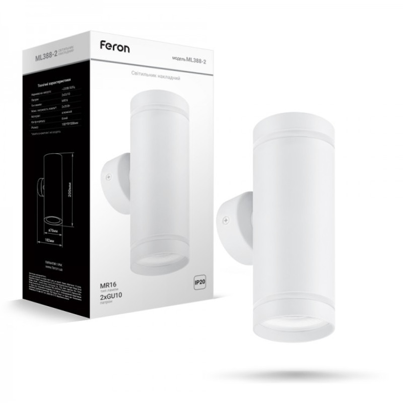 Накладной светильник FERON ML388-2 белый – это нокладной двойной светильник с декоративными акриловыми кольцами.