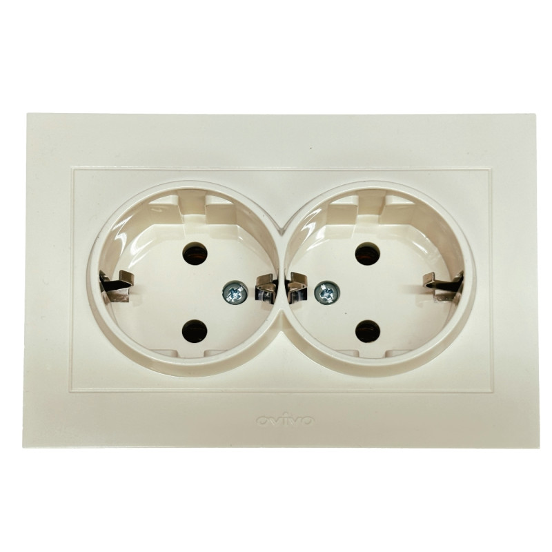 Розетка двухместная с/з OVIVO Grano крем предназначена для врезного монтажа в специальное отверстие в стене. Эта модель отличается наличием декоративной рамки, которая идет в комплекте, что обеспечивает эстетически завершенный вид.