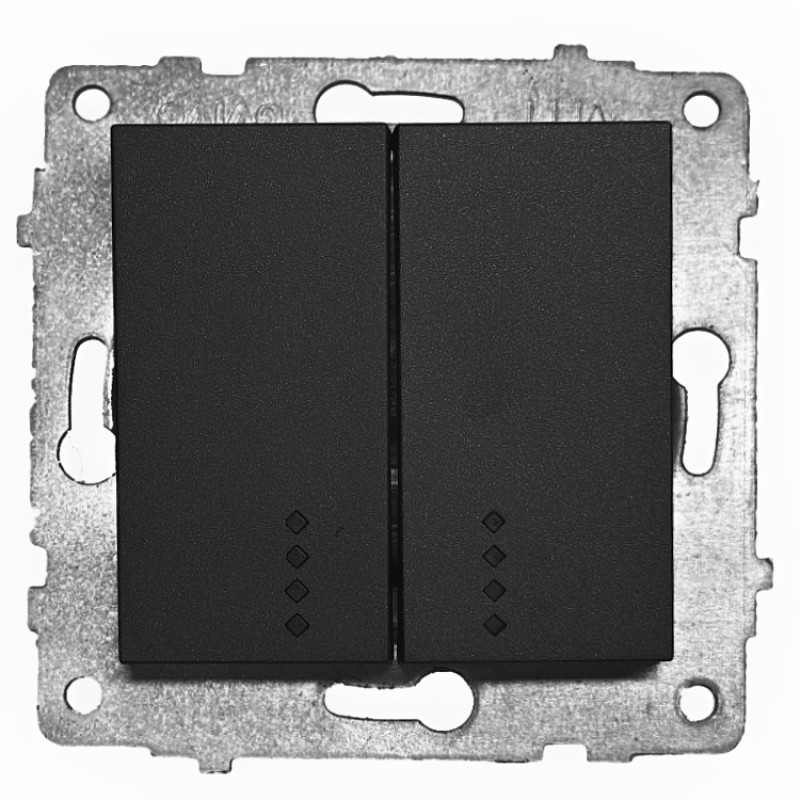 Выключатель изготовлен из прочного ABS-пластика, нетоксичного материала, способного выдерживать широкий диапазон температур. Черный цвет модели гармонично сочетается с современными стилями оформления, такими как лофт, HI-Tech, стимпанк и контемпорари, что делает его ярким акцентом любого интерьера. Эта модель обладает классом защиты IP20, который подходит для использования во внутренних помещениях. Оснащена двумя клавишами с подсветкой, работающими на напряжении 220 В с номинальным током 10 А.
