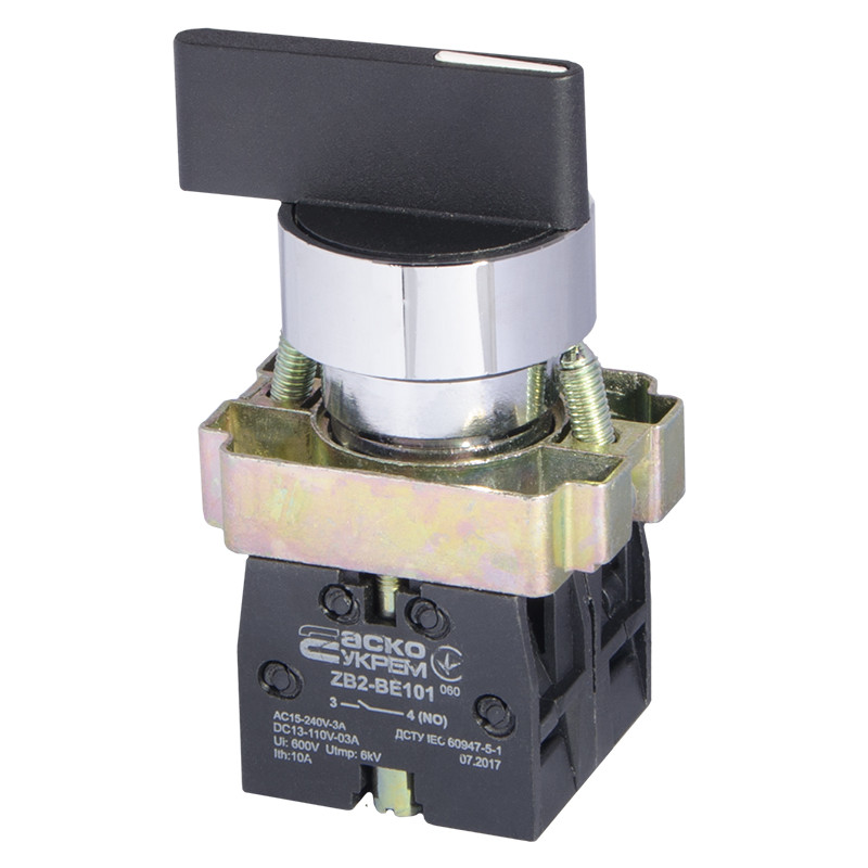 Кнопка поворотная АСКО-УКРЕМ XB2-BJ33 3-х позиционная с самовозвратом и удлиненной ручкой A0140010007