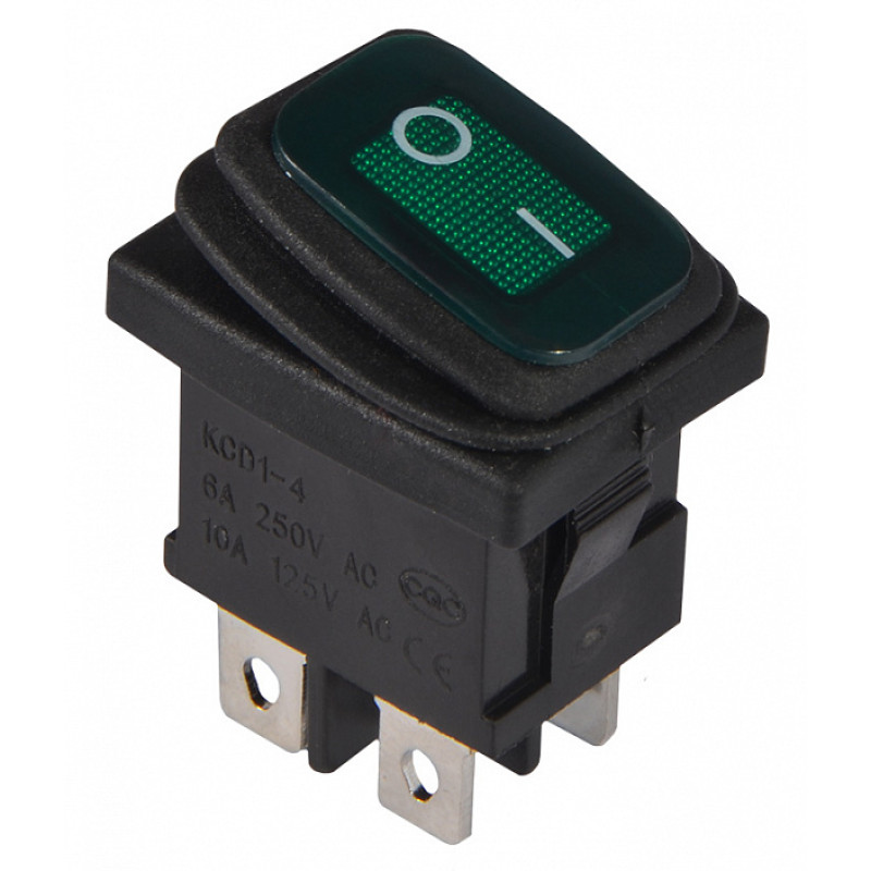 Переключатель АСКО-УКРЕМ KCD1-4-201W GR/B 1-клавишный опрокидывающийся с защитой зеленый с подсветкой A0140040066
