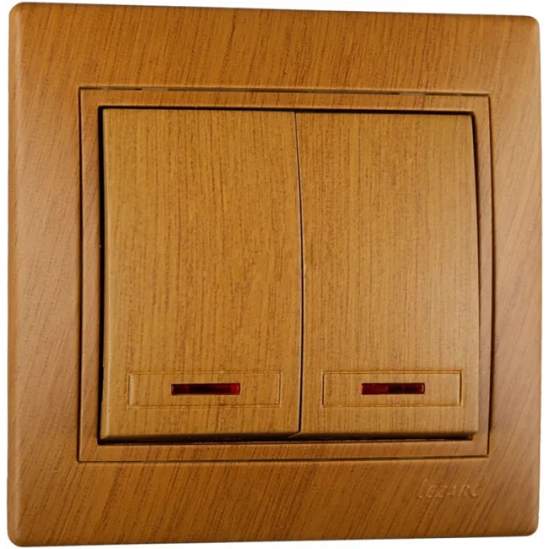 Выключатель MIRA двухклавишный с подсветкой дуб классический 701-5151-112