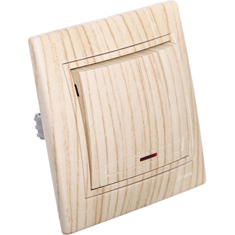 Выключатель одноклавишный с подсветкой LEZARD Mira дуб отбеленный 701-5252-111