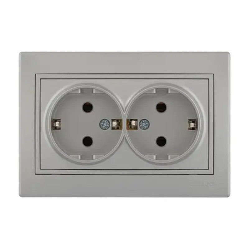 Розетка двойная с заземлением MIRA металл серый со вставкой 701-1010-127
