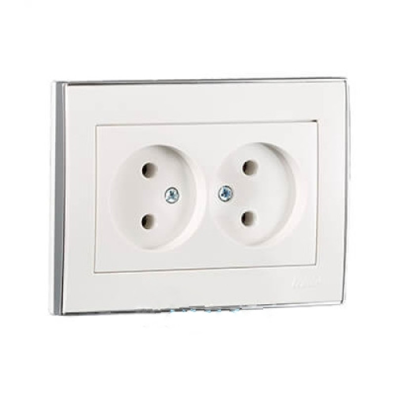 Розетка двойная без заземления со вставкой RAIN белый хром ПБТ 703-0225-128В