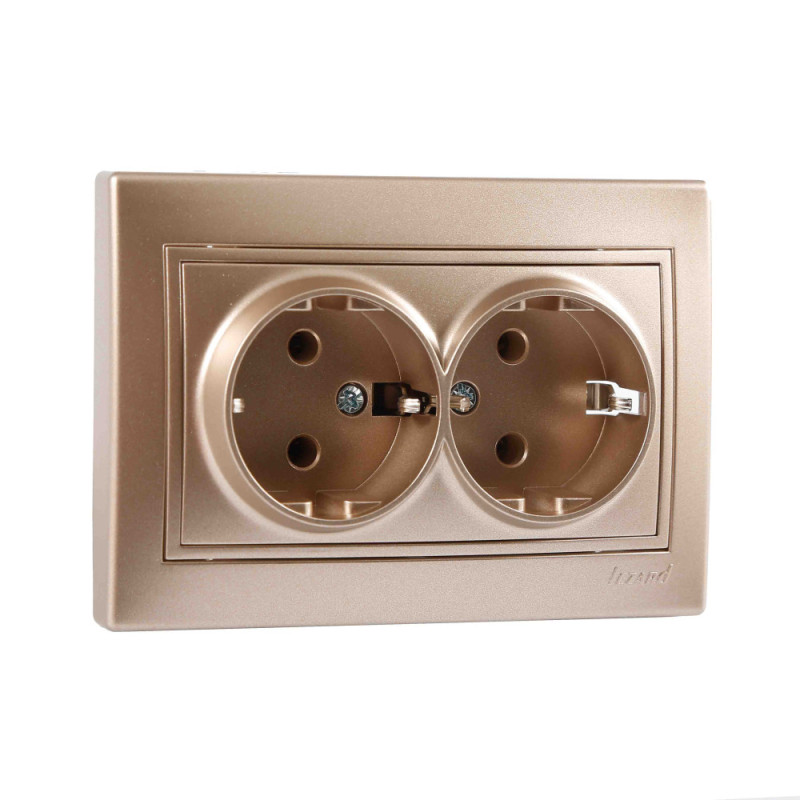 Двойная розетка с заземлением MIRA светло-коричневый перламутр со вставкой идеально подходит для врезного монтажа в специальное отверстие в стене. Благодаря декоративной рамке, которая входит в комплект, розетка придает интерьеру завершенный вид и прекрасно вписывается в современные стили.