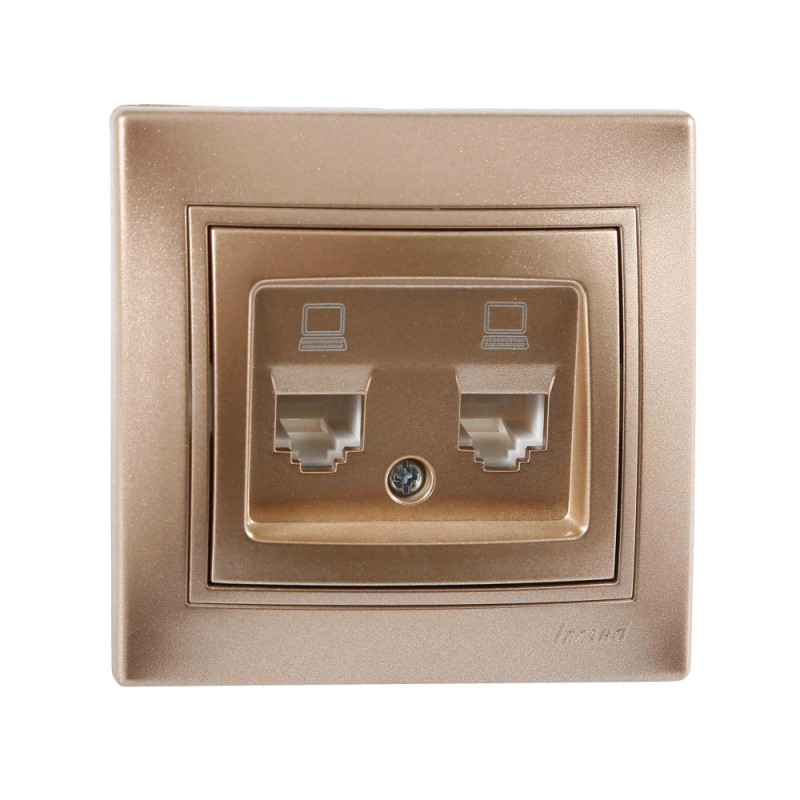 Розетка двойная компьютерная MIRA светло-коричневый перламутр со вставкой – это удобный и эффективный выбор для подключения компьютеров, модемов, роутеров и другой техники к интернету или локальной сети.