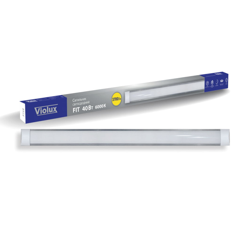 Линейный светодиодный светильник VIOLUX FIT 40W 6000K 120см 3700Lm - предназначен для освещения бытовых и общественных помещений. Светильник работает в сети переменного тока с номинальным напряжением 230В, 50Гц и пригоден для использования в рабочем диапазоне напряжения.