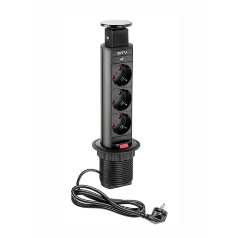 Удлинитель GTV выдвижной врезной d60mm 3 гнезда schucko черный AE-BPW3S60-20