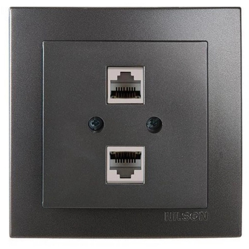 Розетка компьютерная CAT5E RJ45 2 на NILSON Touran Антрацит 24161044