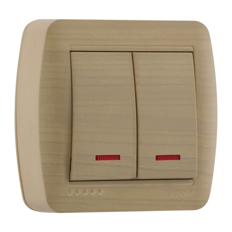 Выключатель двухклавишный накладной с подсветкой LEZARD Demet клен IP20 711-4700-112