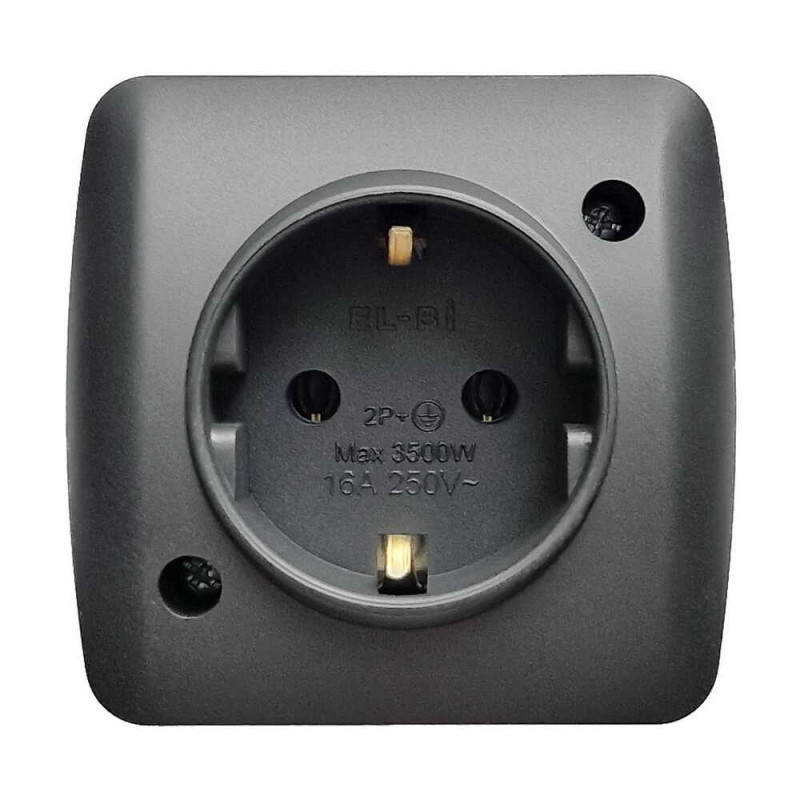 Розетка El-BI Alsu одинарная с/з накладная черная IP20 (504-014800-217)