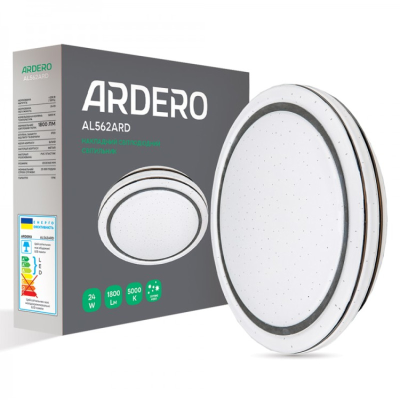 Светодиодный накладной светильник ARDERO AL562ARD 24W LED 1800Lm 5000K звездное небо - это стильный и современный светодиодный накладной светильник. Прекрасный вариант настенно-потолочного светильника для освещения как жилых, так и административно-офисных помещений, интерьеров гостиниц, кафе, ресторанов. Изготовлены из легких материалов, просты в монтаже, экономичны и долговечны.