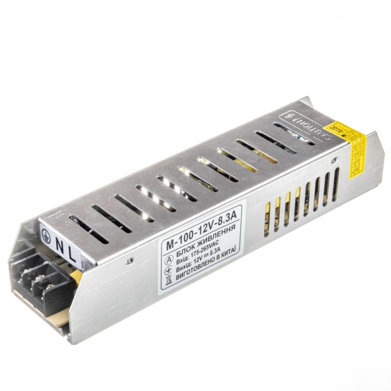 Блок питания 12V 100W преобразовывает переменное напряжение электросети 220В в постоянное — 12В. Разработан для питания светодиодных лент, но также может использоваться и для питания других LED источников света, систем охраны, видеонаблюдения и другого низковольтного оборудования.
