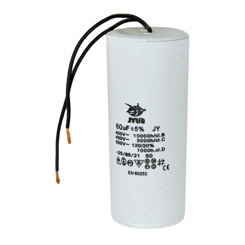 Конденсатор пуско-рабочий CBB-60 60 mkf 450VAC гибкие выводы JYUL