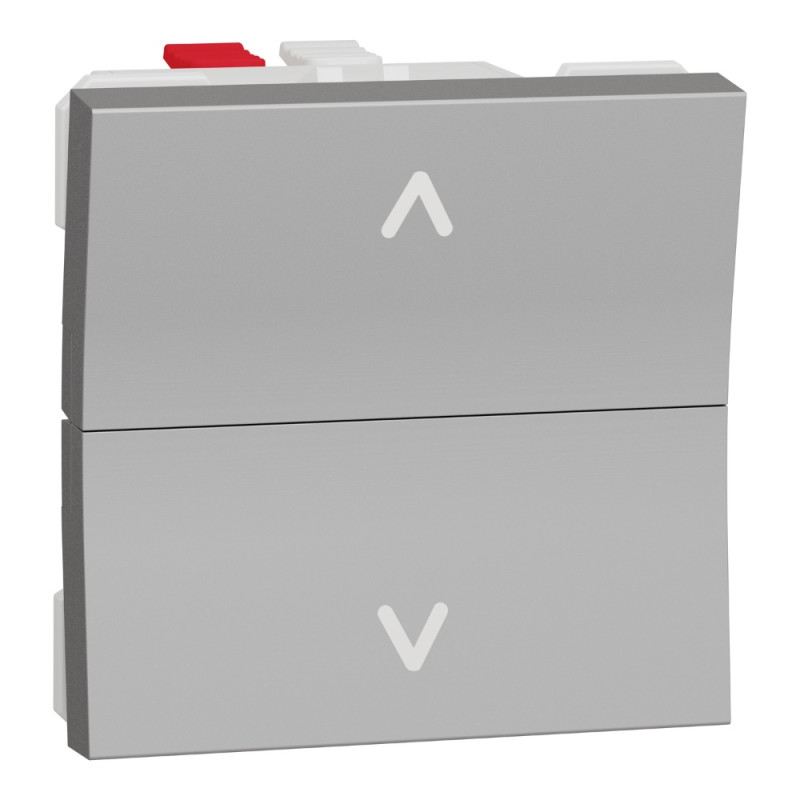 Выключатель для жалюзи 2-клавишный кнопочный (2 модуля) 6А Unica New Schneider Electric алюминий NU320730