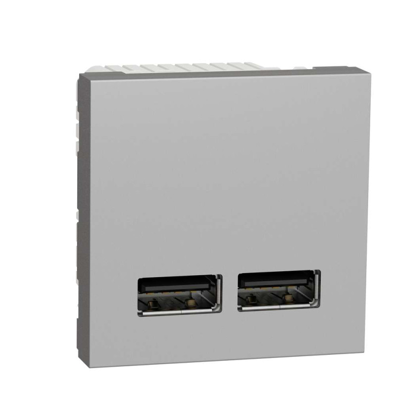 Розетка USB 2.0 двойная 2.1А тип A+A (2 модуля) Unica New Schneider Electric алюминий NU341830