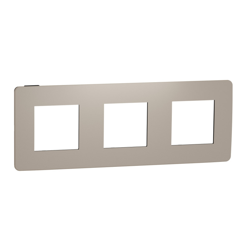 Рамка тройная горизонтальная SCHNEIDER Unica Studio песочная/антрацит предназначена для установки нескольких розеток или выключателей в одном месте. Она выполняет не только декоративную функцию, прикрывая врезное отверстие в стене, но и обеспечивает дополнительную надежность монтажа.