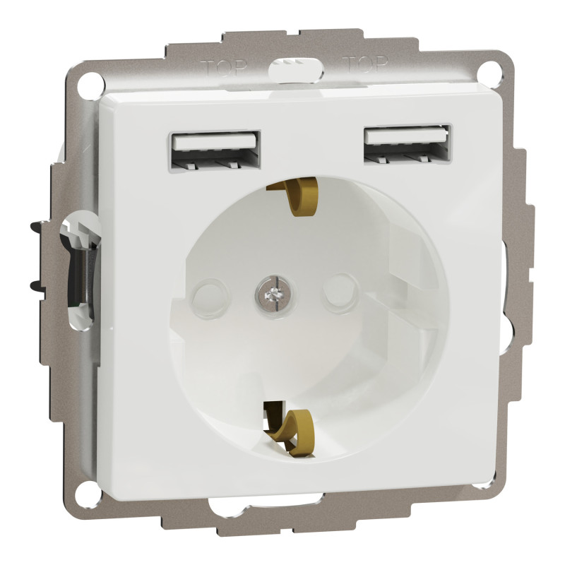 Розетка с заземлением + USB A+A, 2.4A со шторками Белый Sedna Design Schneider Electric SDD111052