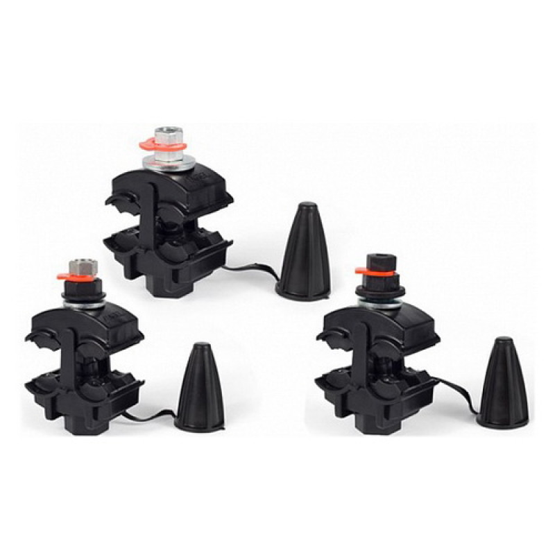 Зажим прокалывающий16-95/2.5-35 Marelизолированный, герметичный, предназначенный для ответвления и соединения как фазных так и нулевых проводов СИП (самонесущих изолированных проводов), а так же ответвления проводов освещения. Надежный электрический контакт при затягивании болта образуют ножи контактных пластин. При достижении определенного усилия достаточного для создания надежного электрического контакта происходит срыв головки затягивающего болта. Конструкция зажима обеспечивает герметичность соединения и надежный электрический контакт, подтверждаемый испытанием, во время которого зажим погружается в воду на глубину 1 метр в 1 минуту при подаче переменного напряжения 6 кВ частотой 50 Гц. Корпус зажима выполнен из полиамида армированного стекловолокном. При необходимости зажим может быть снят с линии с помощью соответствующего ключа.