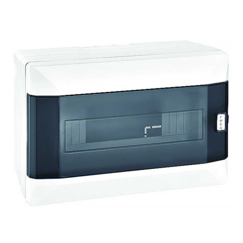 Корпус изготовлен из высококачественного пластика, что обеспечивает прочность и долговечность. Бокс выполнен в классическом белом цвете, гармонично сочетающемся с любым интерьером. Прозрачная дверь позволяет быстро и легко просматривать состояние внутренних модулей без необходимости открывать бокс. Этот бокс рассчитан на установку до 9 модулей стандартного размера. Его габариты составляют 165×240×105 мм. Изделие соответствует классу защиты IP40, что обеспечивает надежную защиту от пыли и других мельчайших частиц.