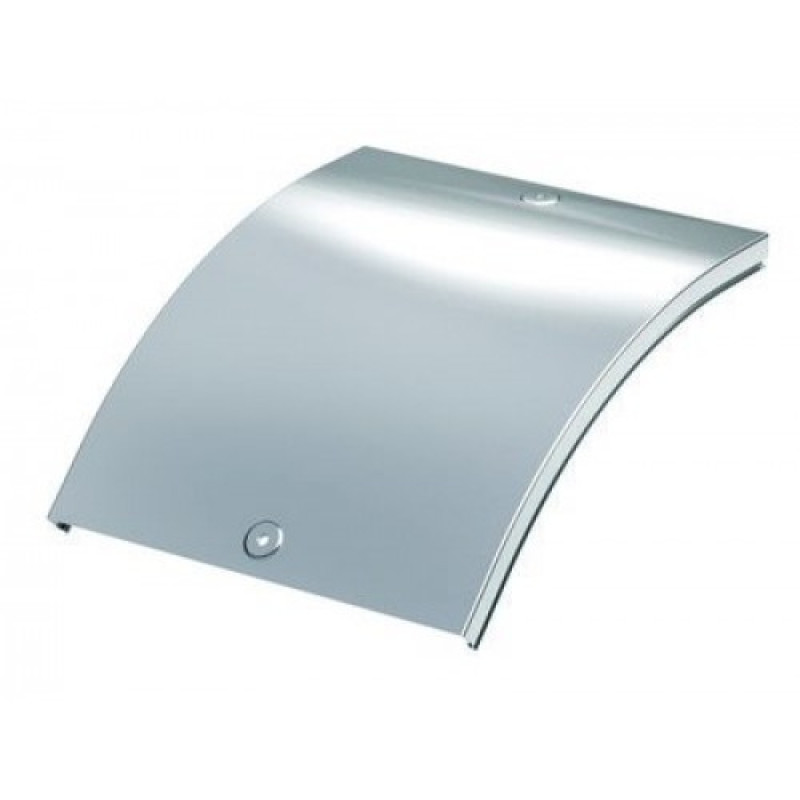 Изготавливается из стали толщиной 0,6 мм, оцинкованной по технологии Сендимира, что улучшает коррозионную устойчивость. Конструкция крышки представляет собой металлический лист, изогнутый под углом 45 градусов, имеющий радиус изгиба 240 мм. По бокам предусмотрены защелки, а на основании –; отверстия для крепления метизами.