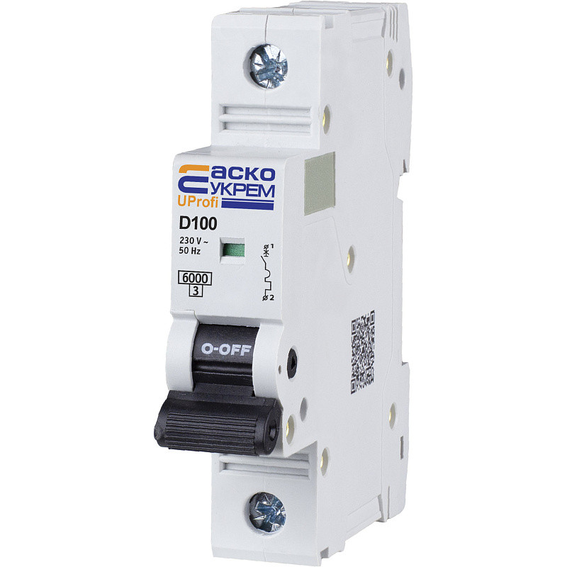 Модульный автоматический выключатель UProfi 1р 100А D 6kА АСКО (A0010210125) - предназначен для осуществления оперативных коммутаций, защиты низковольтных электрических цепей от длительных токовых перегрузок и сверхтоков короткого замыкания.