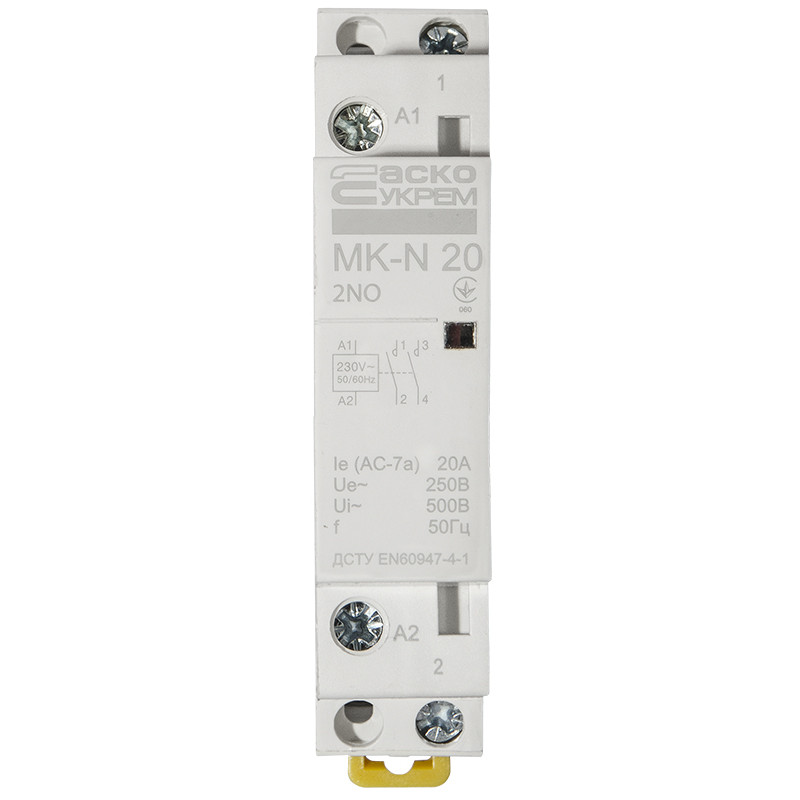 Модульный контактор MK-N на 2 полюса и 20 А предназначен для коммутации малоиндуктивных нагрузок.