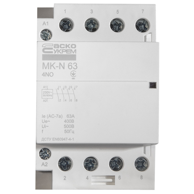 Модульный контактор MK-N на 4 полюса и 63 А предназначен для коммутации малоиндуктивных нагрузок.