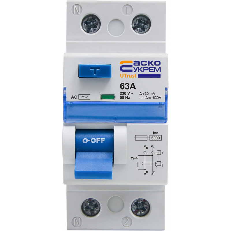 Устройство защитного отключения UTrust 1P+N 63А 30mА АС АСКО (A0010210133)