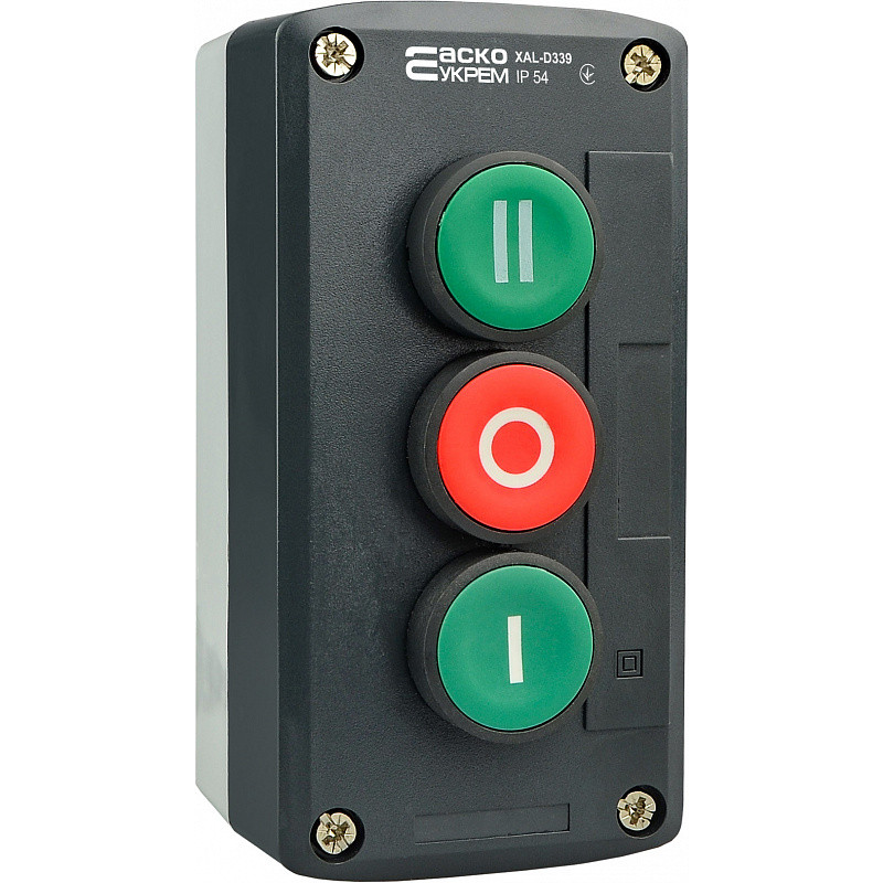 Пост кнопочный трехместный «Пуск1-Пуск2-Стоп» XAL-D339 АСКО-УКРЕМ (A0140020067)