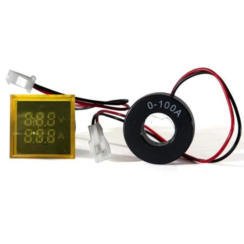 Цифровой ампер-вольтметр переменного тока ED16-22 FVAD 0-100A, 25-500В (желтый) квадратный АСКО A0190010048