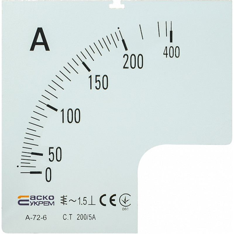 Шкала 200/5А до амперметра трансформаторного включения A-72-6 (72×72 мм) АСКО-УКРЕМ A0190010071