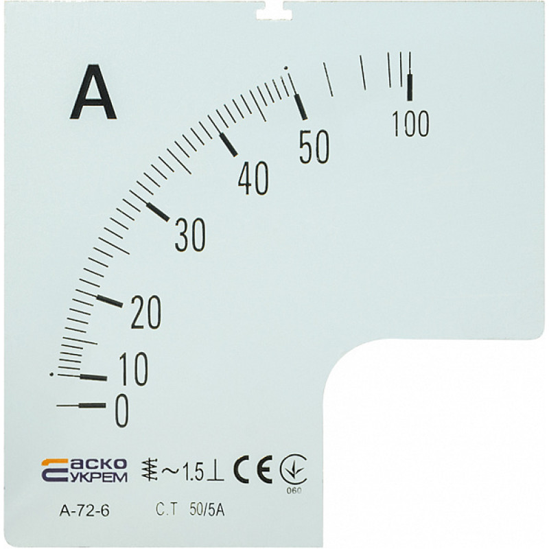 Шкала 50/5А до амперметра трансформаторного включения A-72-6 (72×72 мм) АСКО-УКРЕМ A0190010068