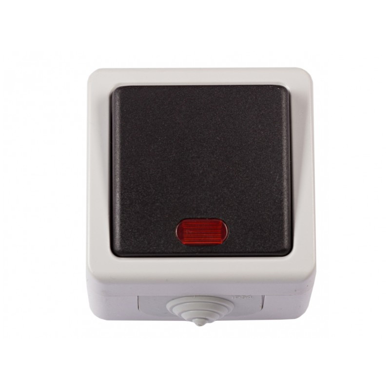 Выключатель 1-й с подсветкой серый накладной IP65 LUXEL 6505 DEBUT