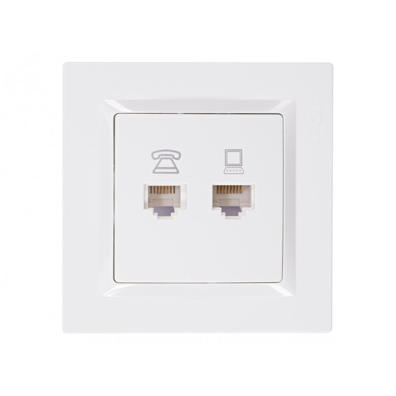 Розетка компьютерная+телефонная белая 9029 JAZZ LUXEL
