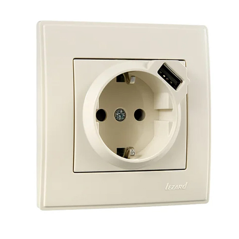 Розетка Lesya Крем 1-я с/с + USB 705-0303-181