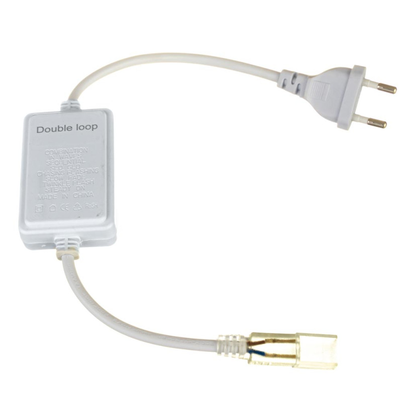 Диодная RGB лента 10 мм 220 V IP 65 не требует блока питания на 12 V. Для включения такой ленты вам понадобится только компактный токовый выпрямитель. Это небольшой шнур белого цвета со встроенным адаптером питания, который подключается в сеть 220 V. Данный преобразователь питания с одной стороны имеет коннектор, присоединяемый к самой ленте, а с другой стороны располагает вилку, которая вставляется в розетку. Данное соединение позволит вам подсоединить до 50 метров такой ленты.