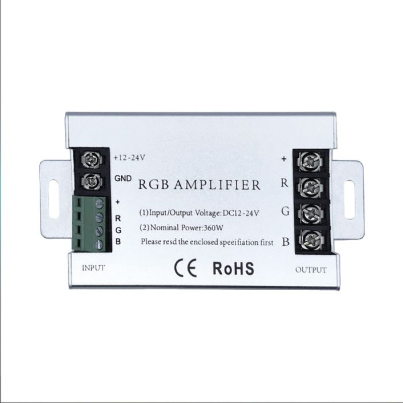 Усилитель светодиодной ленты RGB AMPLIFIER 24A – качественное и компактное устройство, подключаемое непосредственно к контроллеру LED ленты.