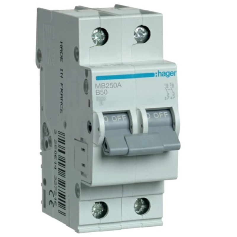 Автоматический выключатель с двумя полюсами и номинальным током 50A от известного производителя Hager предназначен для защиты электрических цепей от чрезмерных токов и коротких замыканий. Модель MBN250 обладает выдающимися характеристиками и соответствует стандартам качества, включая EN 60898-1. Это устройство эффективно функционирует при напряжении до 230V и обеспечивает отключающую способность в 6kA, что делает его идеальным для применения в бытовых и коммерческих электрических системах.