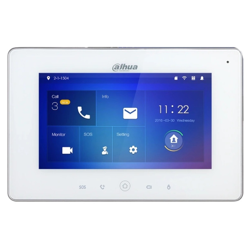 IP видеодомофон Dahua DHI-VTH5221DW-S2 оснащен цветным 7-дюймовым сенсорным дисплеем с разрешением 1024x600. Встроенный динамик и всенаправленный микрофон позволяет создать двустороннюю аудио связь с посетителями. Через тревожные видеовходы и Wi-Fi к домофону подключаются разные датчики тревоги (поддержка 6 проводных и 8 беспроводных каналов входа, 1-выход).